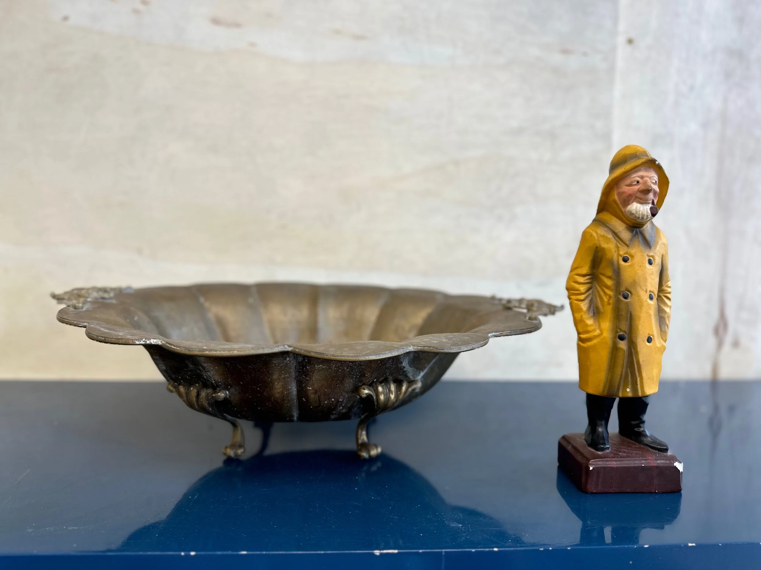 Shop › Large Brass Bowl with Scrolled handles and four feet - 4.2lbs - 6" tall by 23" long Image 1 of 5 Image 2 of 5 Image 3 of 5 Image 4 of 5 Image 5 of 5 Large Brass Bowl with Scrolled handles and four feet - 4.2lbs - 6" tall by 23" long $120.00 CONDITION: Discoloration and marks of age. Vintage. Being Sold As Is.MAKER: Unknown Add To Cart Added! CONDITION: Discoloration and marks of age. Vintage. Being Sold As Is.MAKER: Unknown